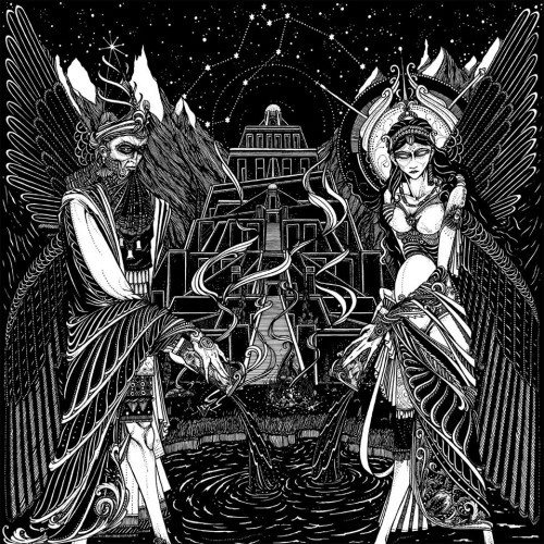 The piece was drawn by the esteemed Karmazid and shows Enki and Ninhursag pouring the waters of creation into the sea of absu. We wanted something classic, elegant yet striking to adorn the cover of our first album and are extremely happy with the outcome of this piece.