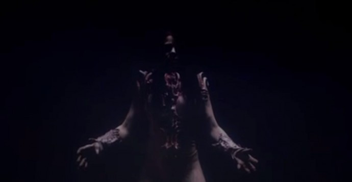 Probably not safe for work, the middle section contains no nudity but that outfit is very form-fitting for that lady. You also get Nergal in full Lucifer garb. The costumes were designed by Sharon Toxic. It’s dedicated to the life and memory of H.R. Giger.