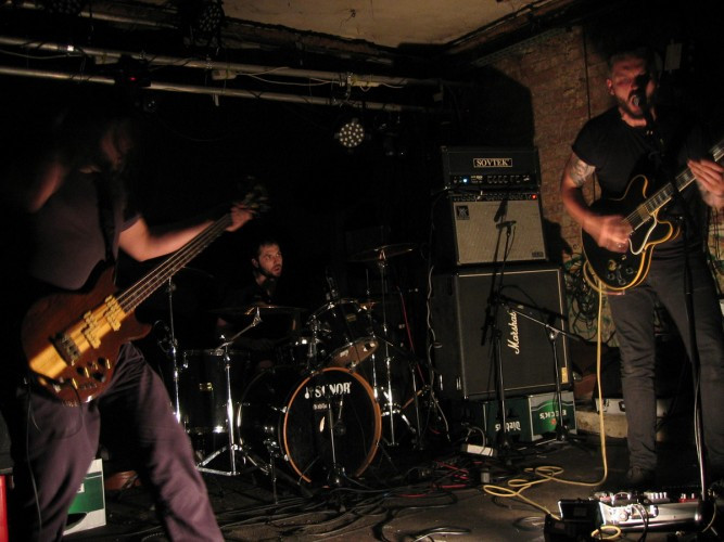 The booming drums and massive bass notes at the outset of the song are spine-shakingly heavy, all the better to set the stage for the contrast provided by Löllmann’s ethereal, soaring voice and the shimmering guitar chords that swirl around all the pavement-splitting in the low end. The song grows in intensity and volume, the drums hammering and tumbling, the swirling guitars becoming electric, and Schmidt and Löllmann uniting their voices in an emotional purge of skin-flaying shrieks.