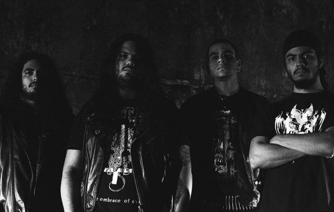 Earlier this year the Brazilian death metal band Escarnium signed a North American deal with Redefining Darkness Records, looking ahead to the release of their next album. To pave the way for that, Redefining Darkness is releasing Godless Shrine of Decay, a compilation that includes selected cuts (all of them remastered) from the band’s previous releases as well as one new song, and we’ve got a full stream of this godless shrine for you today. It seems only fair to issue a warning in advance: Prepare for a ravaging onslaught of hellish old school death metal.