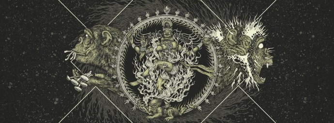 Below you can listen to the first advance track from the album, a sonic scourge named “Scourge of Aeons”. If you want a tornado of manic drum blasting, threshing riffage, and a duet of banshee shrieks and bearlike growls — plus punishing grooves — you came to the right place. Sublimely savage metal, with a seductive little guitar melody that surfaces in the maelstrom long enough to get its hooks in you.
