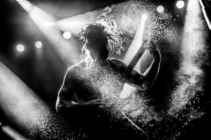 Consistent with the song’s title, it’s a muscular, brawling piece of music driven by Bölzer‘s sinuous, mind-warping riffs and a spine-rupturing drum performance. Laced with guitar chords that sound like spectral chimes and with vocals that are mainly harsh and savage, “Spiritual Athleticism” is explosive and gripping.