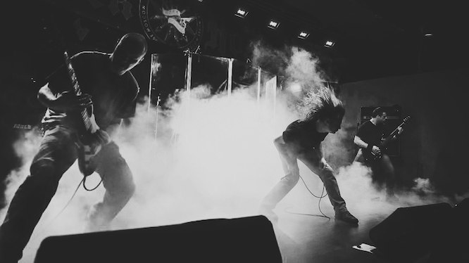 I’ve written about the Roman band Black Therapy on several occasions since discovering them in 2014, most recently in mid-October after I heard a song called “Stabbed” from their new album (their second) named In The Embrace Of Sorrow, I Smile. Now I’m happy to report that the album was released on Friday by Apostasy Records and can be streamed in full.