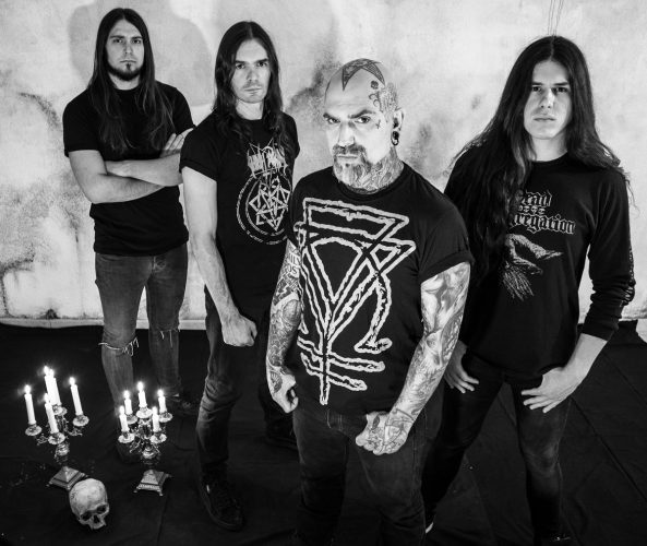 Originally formed in 1998, the Italian brutal death metal band Blasphemer have released two albums so far — On the Inexistence of God in 2008, and 2016’s Ritual Theophagy, which we premiered and reviewed here last October. That last album left an especially deep mark, delivering a full-bore blaze from the beginning right up to the final track (which takes a different turn) — an utterly ferocious, unrelentingly savage, mercilessly brutal onslaught, and also an eye-popping, jaw-dropping exhibition of technical fireworks.