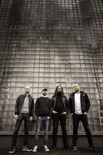 V’s history reaches back to the ’90s, when the band’s original personnel (two of whom had formed the hardcore band Amend in 1994) were amalgamating a blend of hardcore, death, and thrash metal. An EP named VI was recorded in 2006 (but just released last year), and then the band went on a hiatus for a decade, emerging again now with Pathogenesis. And with the passage of so many years, V’s sound and conceptual focus has changed, the music becoming heavier and more freighted with doom, their world-view transitioning into visions of a nihilistic future and “a world crumbling to its knees” — which is indeed what this new song sounds like.