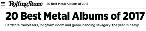 Anyway, Rolling Stone magazine published their list of the 20 Best Metal Albums of 2017 yesterday. This year they also preceded it with a very nice video that ticked off the winners, followed by a more expansive print discourse on each selection.