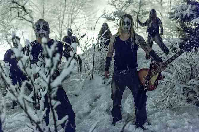 The album’s first single, “Daudens Kall“, is grim and icy, but the mid-paced rhythm is highly headbangable. A very enticing, head-moving bass solo provides the bridge to an invigorating gallop and a change in mood to something more wild and free, but still with an uneasy edge of bloodlust in the sound. There is no mistaking the bloodlust in the vocals — a convocation of putrid growls, vicious snarls, and wretched wails. And all of that happens in the song’s first half.