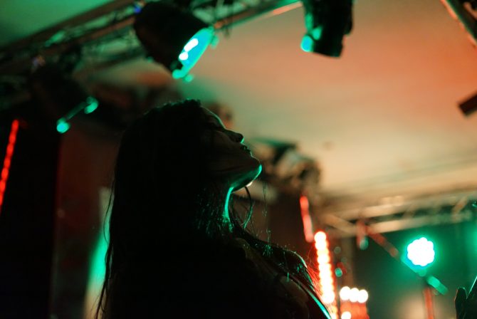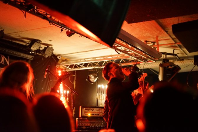 We cut our arrival a bit close, and so when we walked into Húrra the music room was already packed, with the crowd overflowing into the bar area. It wasn’t long before NYIÞ began what I can best describe as the beginning of a ritual.