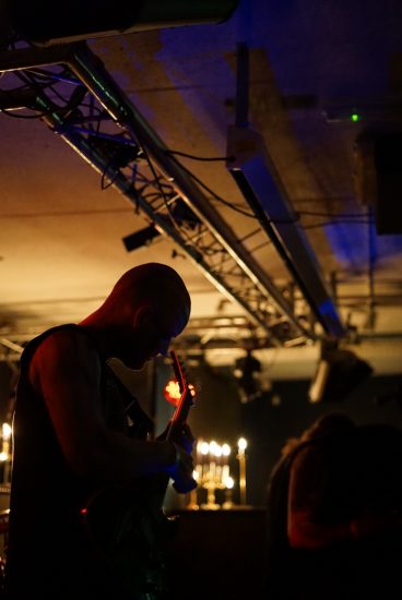 For most of this time the sound of a bass drum beat like a heart, ambient music filled the rooms like a gleaming mist, and (unless I hallucinated it) occasional shrieking could be heard, as if from a distance, while candelabras and incense burned from the stage. This went on a long time, all the way through Naðra setting up, and ending only as Naðra began to play.