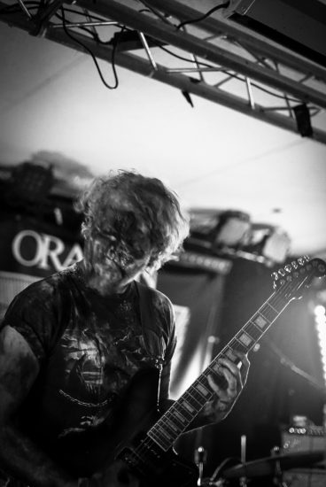 Positioned near the corner to the stage on the right (facing it), I found myself during Abyssal’s set behind a man who had his camera raised in front of my face for the vast majority of the set. He must have taken hundreds of photos, apparently none of them quite good enough in his eyes, because the process of documenting the show, rather than actually watching it, never ended.