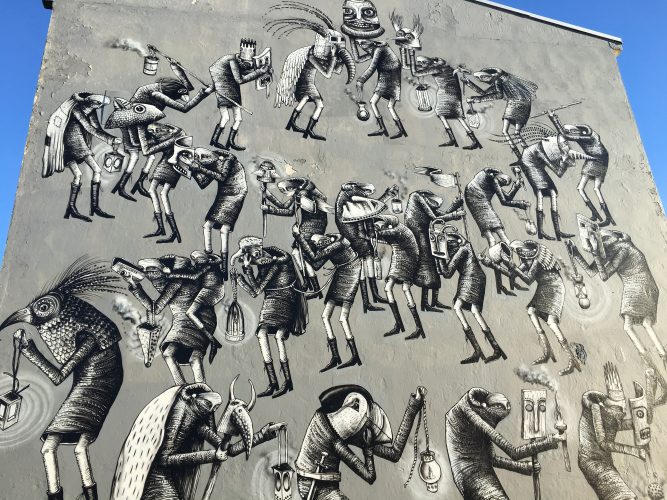 Damn that is some metal street art on the first photo! And I immediately recognized elements of the second street art photo – where I live the council has been revitalising the old town/industrial area by getting street artists from around the world to cover up the many plain brick and concrete walls around. The 2nd artwork here seems like it’s by a UK graffiti artist “Phlegm” as the same elements are used in one of the works here: