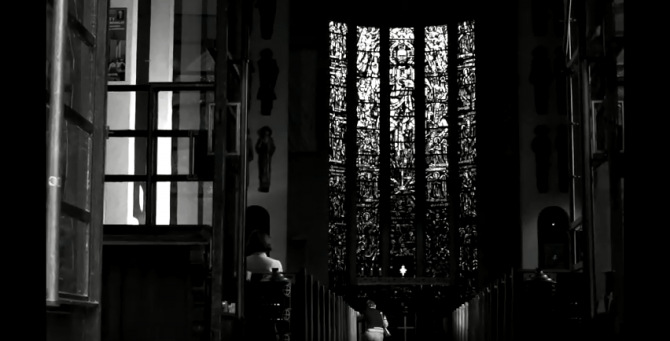 Within the pervasive abrasion of whirring chords, set to a stately drum beat, ethereal notes ring out and changing voices bring solemn intonations, scarring shrieks, soaring song. As the drum rhythm changes and the heavy bass vibrations become more urgent, the song’s intensity escalates. It is a haunting and mesmerizing experience.