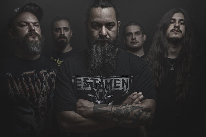 As in the case of Sol De Sangre, I’ve written a lot about this Spanish band, hosting premieres of multiple songs and videos for their 2018 debut album Formador — which is excellent, and well worth your time if you haven’t encountered it before. They crafted a blood-rushing attack that embraced and integrated the styles of both Floridian death metal and Bay Area thrash, paying homage to fearsome progenitors from the ’80s and ’90s. And on that debut album, in addition to enlisting the cover artist (Ed Repka) who crafted some of the band Death’s most memorable covers, they secured guest guitar solos from two former Death guitarists — James Murphy (also Obituary, Testament) on the track “Formador” and Bobby Koelble on the song “Cebos Vivos” and the bonus track “Formador”.