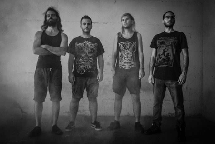 Rising from the ashes of a hardcore punk band, the death-metal/grindcore band Iato first came together in 2011 in the town of Quartu Sant’Elena on the Italian island of Sardinia. Now consisting of drummer Lorenzo Balia, bassist Andrea Manis, lead guitarist and backing vocalist Federico Pisano and vocalist/guitarist Francesco Nano, Iato have released a pair of EPs, and are now on the verge of seeing the release of their debut album Ucronia via GrimmDistribution (Ukraine) and The Triad Rec (Italy-Malta).