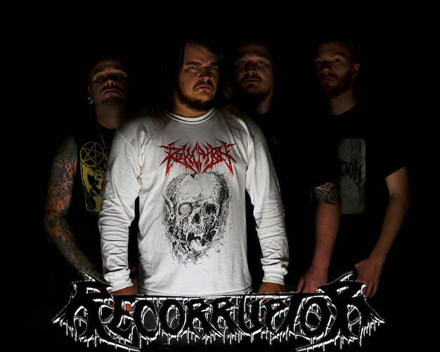 On the 21st of this month the death metal band Recorruptor, who are based in Lansing, Michigan, will release their second album The Funeral Corridor, which follows their well-received 2017 debut full-length, Bloodmoon. Pulling from inspirations both old and new, they’ve created a brace of well-conceived and well-executed songs that collectively make for a dynamic experience, showing themselves capable not only of discharging sensations of monstrous menace and electrifying savagery but also packing their onslaughts with melodic and rhythmic hooks that dig deep and are difficult to dislodge (even if some of them are seriously unsettling).