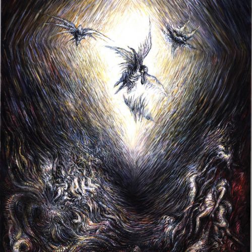 Forsmán‘s lyrics are voiced in ravishing, belly-deep roars and throat-splitting howls, their intensity matched by the blazing drumwork, the frantic bass-lines, and the roiling upheavals in the riffing. Often, there’s also a sweeping, panoramic quality to the songs which gives the drama in the music (and it’s theatrically dramatic) a larger-than-life quality. In the midst of such extravagant surges, it’s easy for listeners to be swept off their feet, spun around, and hurled upward into the midst of racing clouds.