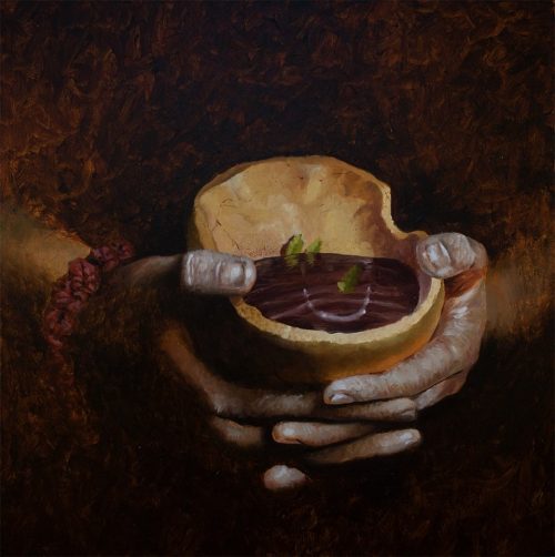 Kāla explain that the song “divines Bhakti as manifest through the holy psychotropic drink, soma”, which helps explain the cover art, a painting by Jotham Malave. (Thanks again to Rennie for letting me know about this new song.)