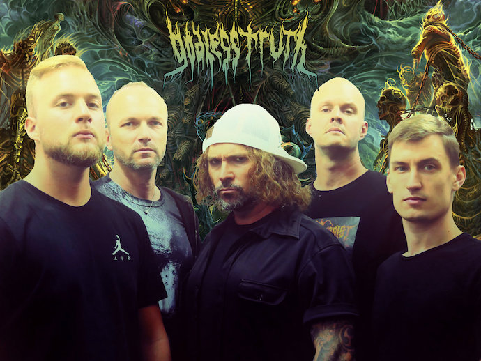Moreover, this new album is emerging at a time when blizzard bands have saturated the tech-death scene, many of them engaged in an ever-escalating arms race for speed and volume of notes and beats. In that context, Godless Truth‘s music is especially welcome, for reasons that are well-demonstrated in the song we’re premiering today in advance of the album’s March 4 release by Transcending Obscurity Records.