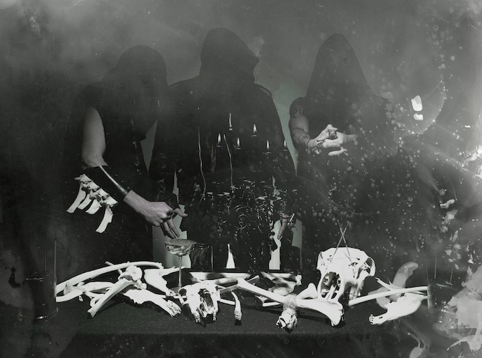 Vocals from what sounds like each of the three unknown members materialize from cavernous depths as sinister gutterals and frantic snarls. I love the barbaric chanting that opens the last track, “Poisoned Bodies of Swine Imbuing.” It plods and grows in intensity before becoming enveloped in the warped wall of noise, becoming another layer in the madness. At times, the vocals match or trade off with the heaviness of the bass, adding to the overall hallucinatory effect. Aischrolatreia has moments that left me wondering if I had really heard certain things or if my consciousness had somehow expanded during the listen and decided to place them there just so. There is a potent psychedelic and cerebral quality to what Diabolic Oath have conjured, yet it remains coated in the rotten, grimy soils of the PNW.