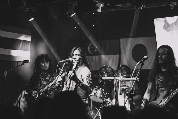 The band jam the pedal down on the very first track, “Kneel Before the Gods“, and they don’t ease up very much until the closing track “Unholy Odyssey” has run its own riotous course. It’s an album fueled by adrenaline, and it’s a big transfusion of adrenaline for listeners, but as you’ll discover from our full streaming premiere, the thrills derive from more than just the music’s turbocharged intensity.