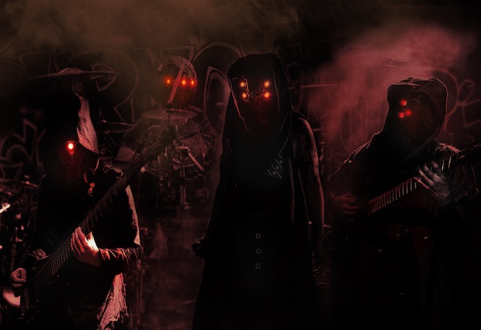 Voraath‘s aim is to do more than record and release music. The music is part of a universe they’re creating, drawing upon elements of horror and science-fantasy, which includes significant visual as well as audio portrayals, including the band’s own presentation of themselves on stage — each member appears as a character in the lore of the music, as you can see: