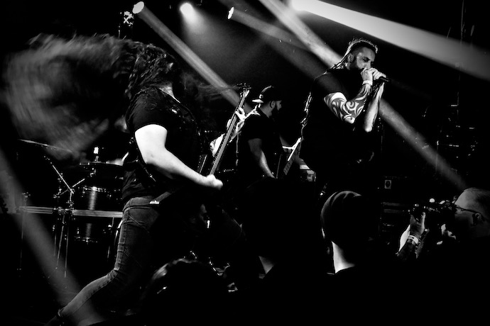 The first band of the night was LA locals, Thrown into Exile. They’ve been around for a while and have two records out with their most recent being in 2020. I had heard them before and they’ve opened some great lineups locally for bands ranging from The Halo Effect and the recent Cavalera Conspiracy tour, as well as appearing at both the first-ever Metal Injection Fest and the return of the Milwaukee Metal Fest.