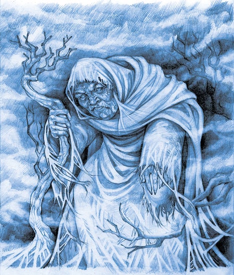 Concerning the band’s Scottish Gaelic name, Cailleach means an old woman or hag, but the Cailleach Bheur refers to a figure from Scottish highland folklore, the Queen of Winter. A great deal more information about her legend is available at The Font of All Human Knowledge.