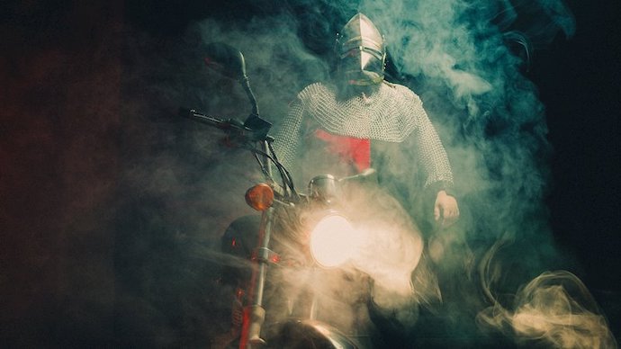 There is the name of the song: “Dungeon Metal Punks Besieging Digital Castles“. There is the fact that Fell Omen‘s Greek mastermind Spider of Pnyx performs the song in a suit of medieval armor. There is this armored warrior’s use of a hurdy-gurdy to open the song, and the fact that it’s not even the most “out there” aspect of the music.