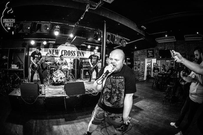 A wave of ear piercing guitar feedback drenches the listener on opening track and leading single “Fear & Loathing In Stevenage“, beginning a journey into sadistic sludge savagery. A tongue-in-cheek homage to the quartet’s Hertfordshire hometown, Praetorian set a high precedent from the start, bringing together blistering speed and ferocity that suddenly implodes into acid tongued doom riffs that stomp and crush the earth.