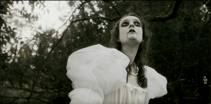 Let’s get to the video first. It tells a story, something like a haunting fairy-tale that the Brothers Grimm might have imagined. It was directed by award-winning filmmaker Randal Plunkett. The interior settings and the costumes are beautifully made, the exterior settings well-chosen. It’s also well-acted and meticulously filmed, and the narrative unfolds in a way that’s gripping.