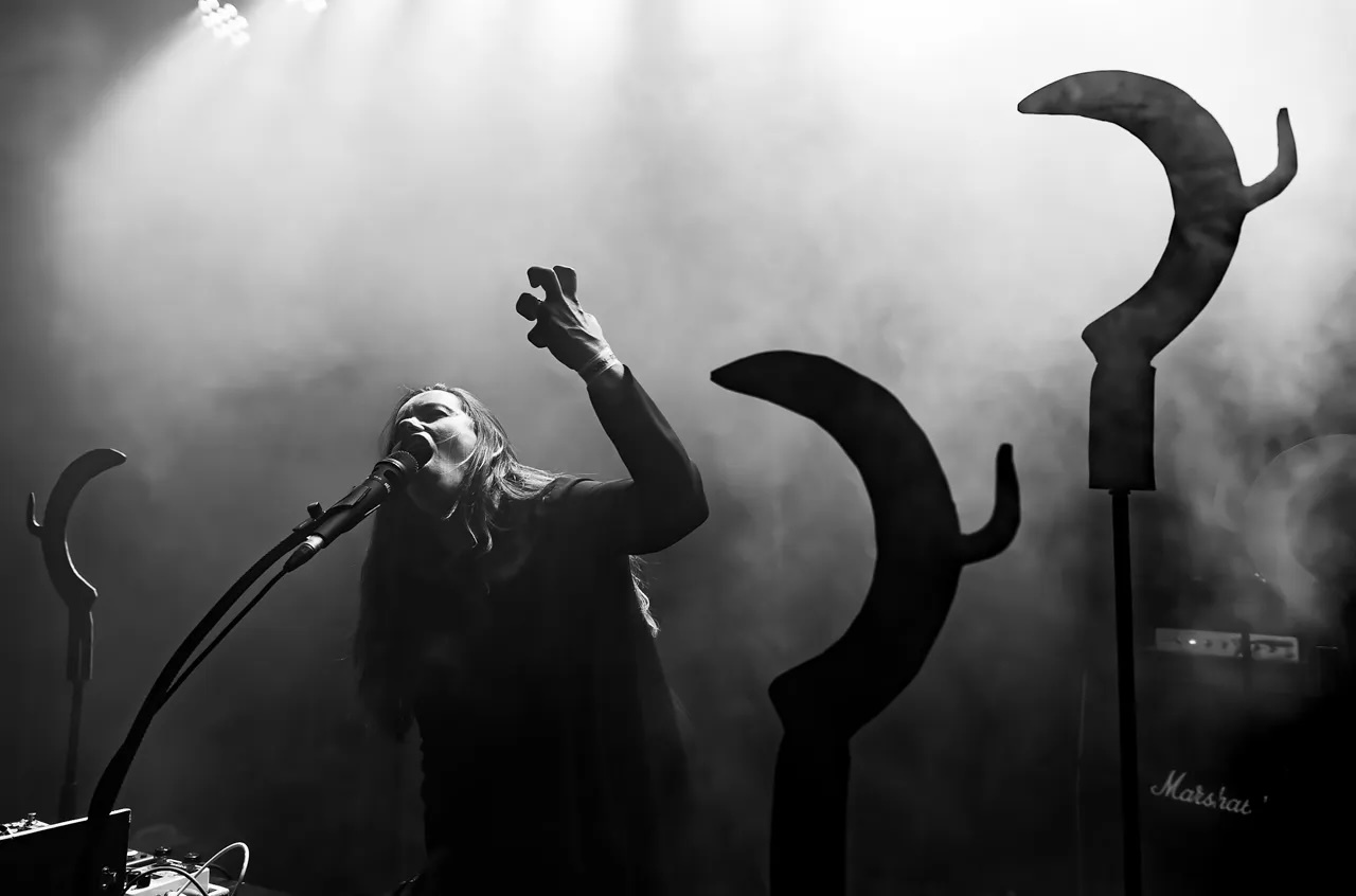 That first single, “Concrete Black“, slowly wails and warps, then eerily quivers and throbs, with only the boom of ritual drums to keep us even slightly earthbound. Marion Leclercq‘s voice wails too, but also vehemently screams on the borderline between fury and pain as the music begins to burn and twist, like some surreal draconic figure made of sound.