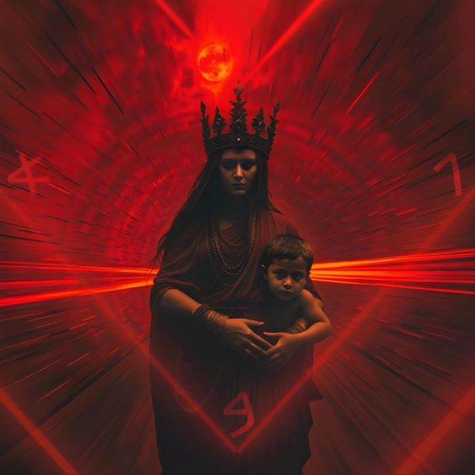 The lyrics are extracted from the language of Torah and Talmud — not to reinterpret, but to expose their embedded dehumanization, and to incite an inquiry into the seed of our collective demise. These are not sacred texts misused, but operational scripts — blood-bound, law-coded — encoding violence as destiny. Angels are replaced by drones. Scripture becomes AI-generated targeting. Human sacrifice is reduced to logistics.