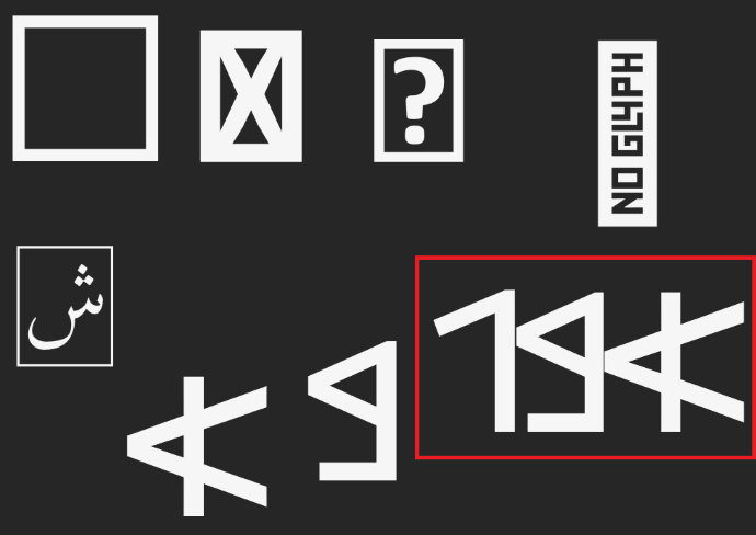 The ancient glyphs are only digitally represented by a few choice fonts, so this picture is a representation of the left-hand path search for the correct one and the right way to read them.