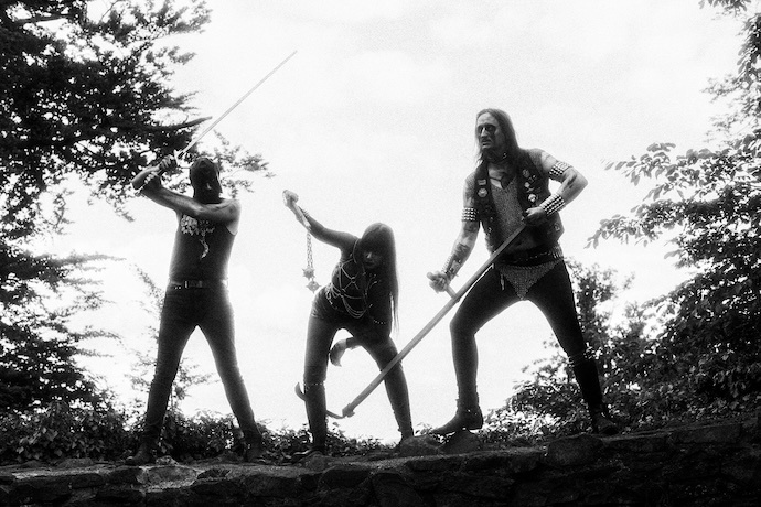 But unclench your sphincters, expel your doubts, maybe take your clothes off. As you’ll discover when listening to the song we’re about to premiere, these three demons clearly had a hell of a lot of wicked fun making their debut album Violence, and you should share in their filthy revels without restraint.