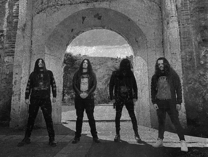 We back up those thoughts today with our premiere of a song from the album in advance of the record’s October 11 release by Transcending Obscurity Records. Its name also links arms with the cover art, and with the album title: “Las Ruinas del Palacio“.