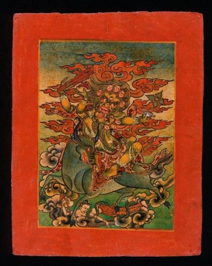 Yellow Yama (?) and Consort on Bull, Nyingmapa Buddhist or Bon Ritual Card