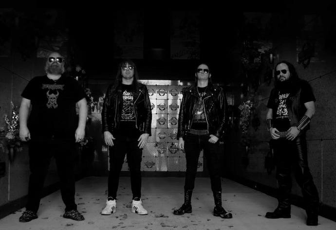 To do this, they’ve dived into “ancient corridors of ’80s-rooted thrash, drawing from the infernal output of various Teutonic blasphemies – from the Big Three to later gods like Desaster and Nocturnal – as well as early Slayer during their hellish Metal Blade years along with the sword-singing spells of Japan’s Sabbat and diabolic possession of South American legions past and present.”