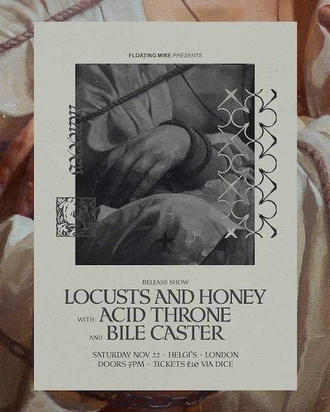 And finally, if you’re in the vicinity of London on November 22nd, you can catch Locusts and Honey’s record release show at Helgi’s, with support from two other heavyweights in the UK doom scene, Acid Throne and Bile Caster.