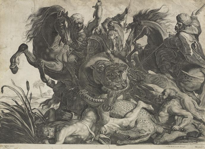 Willem van der Leeuw – Crocodile and Hippopotamus Hunt. National galleries of Scotland collection. Photo, National Galleries of Scotland. (1623-1624)