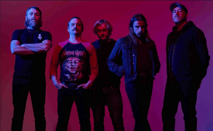Pigsx7 L-R: John-Michael Hedley, Matt Baty, Sam Grant, Adam Ian Sykes, Ewan Mackenzie. Image by Alex Telfer
