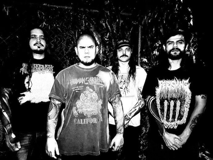 With that chilling interlude behind them, the band finish with “Relicarios” and “Vomitous Trypsteria“. The former feels like a slowly worming progression through pestilential ooze — until it flares, still pestilential but with bounce-off-the-wall rhythms and intervening episodes of exsanguinating riffage and freakishly wailing fretwork that channels despair.