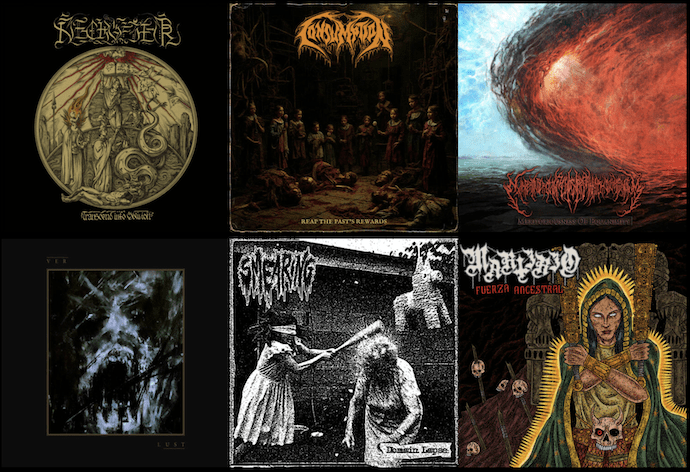 By way of preview: In listening to candidates for today’s collection I fell down a hellish rabbit-hole, beginning with vicious variants of black and death metal and then taking a turn into a pair of furious EPs, one of grind and one of hardcore. If you’re not feeling pissed-off and/or evil and/or grim today, now would be a good time to make your exit.