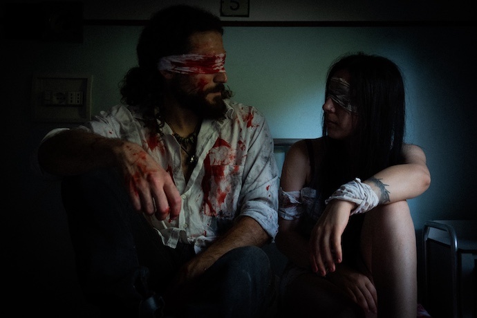 The Eyelessight duo from Pescara, Italy present themselves as manifestations of the name they chose — blindfolded and bloodied, as if their sight had been destroyed by violent events, and their visions must now come from some other means of perception.