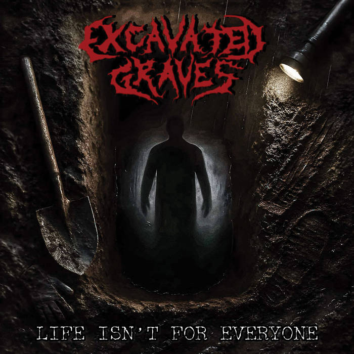 Now we move from Hungary to Poland, from black metal to death metal, and from 2025 to 2026 — because the EP that’s my next recommendation was just released yesterday. Ominously titled Life Isn’t For Everyone, it’s the debut of Excavated Graves, a band that shares three members with another group, Death Endorser (labeled by M-A as brutal death metal and grindcore), that also made their debut release last year. But the band’s members aren’t really newcomers — their resumes include such groups as Parricide, Dissenter, Squash Bowels, and two former live members of Behemoth, among others.