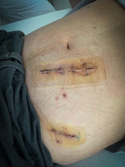 To flesh out more of the back-story, Matt was formerly the vocalist for Internal Devour, Splatterpuss, and Alter Idem. We’re told that he had to undergo multiple spinal surgeries that resulted in life-threatening complications, ultimately requiring surgeons to cut through his abdomen to access his spine and attempt to stabilize it. We received some photographic evidence of this: