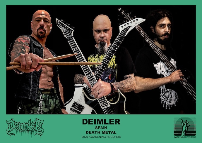 On their new album Darkness Falls, the Spanish death metal band Deimler have found a sweet spot (indeed, many sweet spots) between these extremes. Their music is monstrous and mauling but it’s also frequently mind-boggling in its intricate adventurousness. It powerfully creates unsettling atmospheric auras but also hits like battering rams. It’s packed with hooks, and it includes guitar solos that are eye-opening rarities in the realms of death metal.