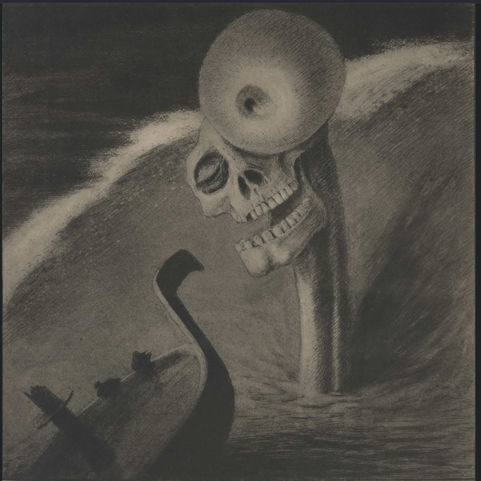 “Das Grausen” (1901-1903) – Alfred Kubin. Sourced from the Obelisk Art History project and serves as the Smiqra and Ὁπλίτης banner image. Expressionist symbolist and at times avant-garde Austrian artist who also wrote one novel.