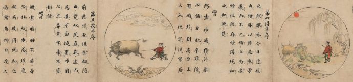 R-L Perceiving- and Catching the bull, from the Ten Bulls by Kuoan Shiyuan/廓庵師遠 (1278)