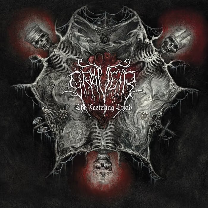 At the outset Graveir immediately hurl listeners into a maelstrom, inflicting bone-smashing blast-beats, magma-like bass-lines, and dense riffing that maniacally sears and writhes. As the drums shift into steadier beats and the bass seems to moodily muse, the riffing begins to sound both more venomous and more desperate (and even miserable).
