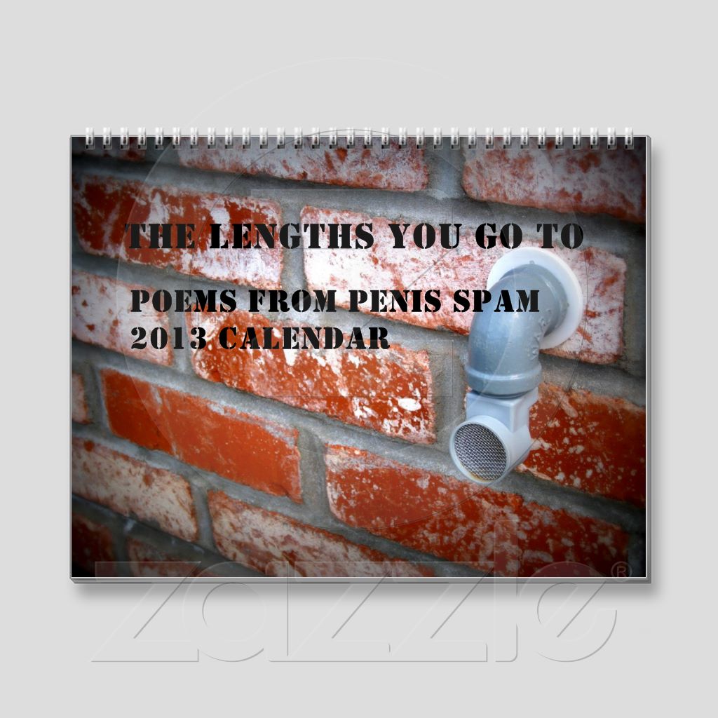 Her latest creation, however, is a calendar with the title The Lengths You Go To – Poems From Penis Spam. There had to be a pretty damned sweet “Eureka!” moment behind this concept. I’ll let Beth explain it in her own words, via an e-mail I received today: